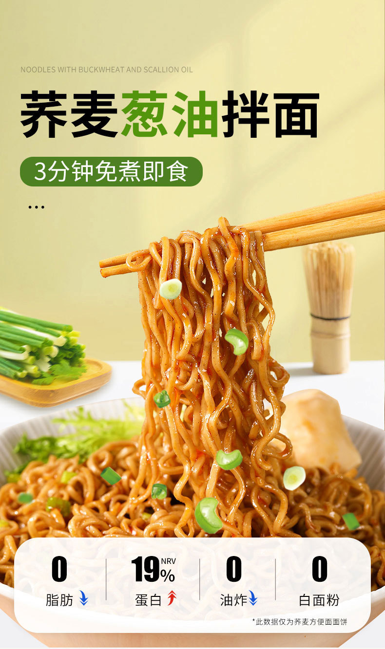 0 Fat Buckwheat Noodles Instant Noodles Whole Case 0 Fat Non Boiling Coarse Grain Noodles with Noodles for Satiety Substitute Meal with Scallion Oil