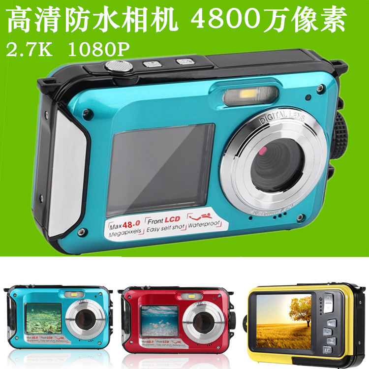 出口英文版全高清2.7K 高清裸机防水数码相机, 可拍照可录像。