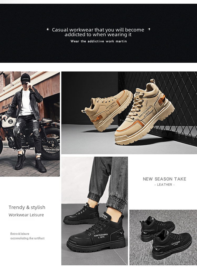 | Sole material : Rubber foam,Youth (18-40 years old),Artificial PU,Round Head,Breathable,Waterproof,Matte leather,Low heel (1-3CM),Martin boots,Leather stitching,Sports,Ordinary thick,Solid color,Whole Order,No,No,Autumn,Middle tube,Front lace-up,EVA,Cotton,PU,Martin boots,3 days,Cloth,No,sgs,1,30*25*20,8610 khaki,8610 Black,Fall 2023,3 days,39,40,41,42,43,44,Injection shoes,ebay,Amazon,wish,AliExpress,No,Europe,South America,Southeast Asia,North America,Martin boots,Male,In stock,Jie Hong,8610 |