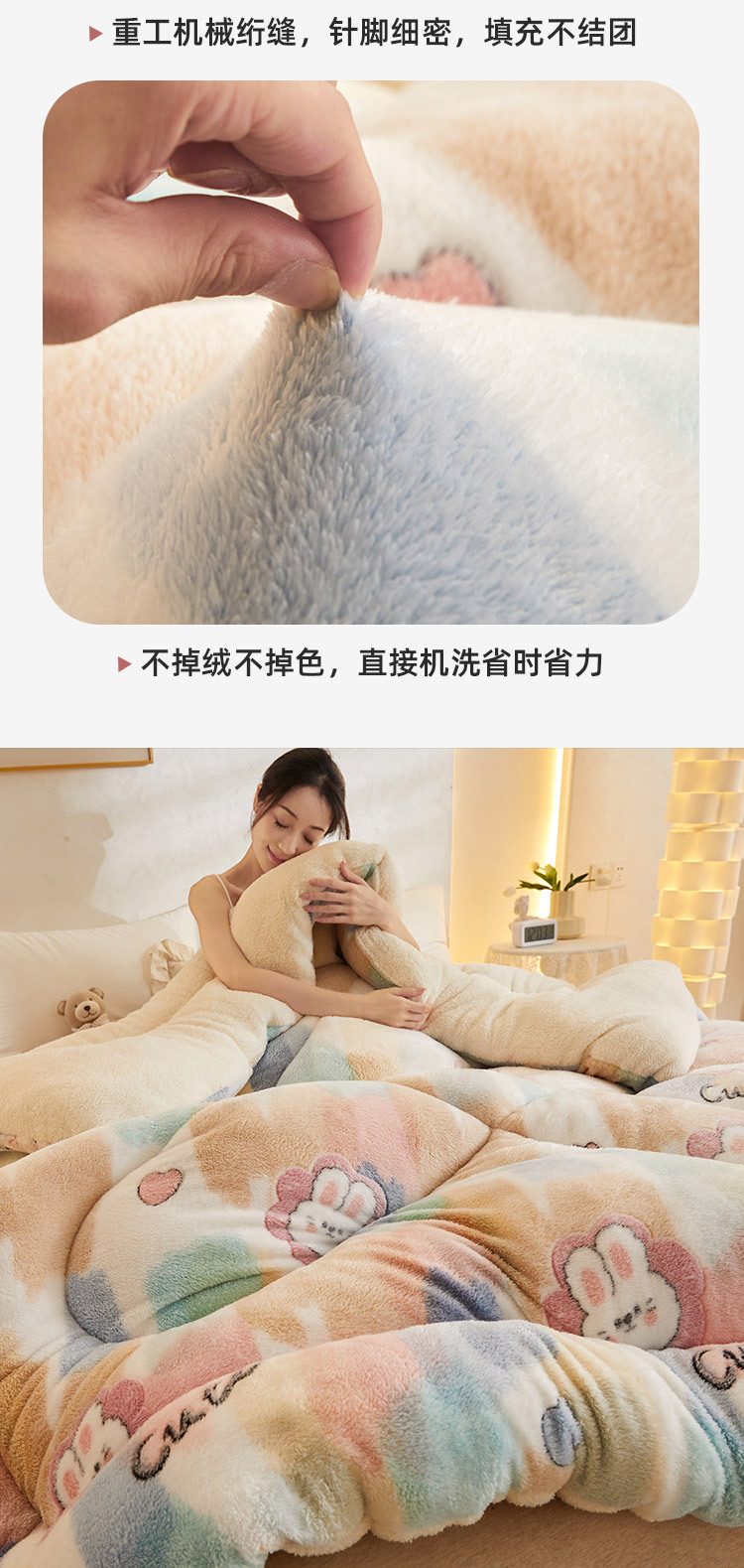Color:Furry rabbit [new upgrade speed warm super soft/double-sided fleece-lined]] Size specification:180x220cm extra thick about 8 jin/say goodbye to cold |
