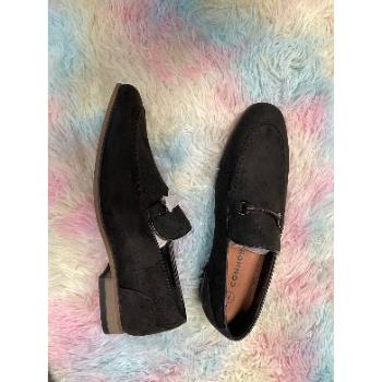 Black Suede Loafers with Metal Buckle Retro Texture Daily Styling Style