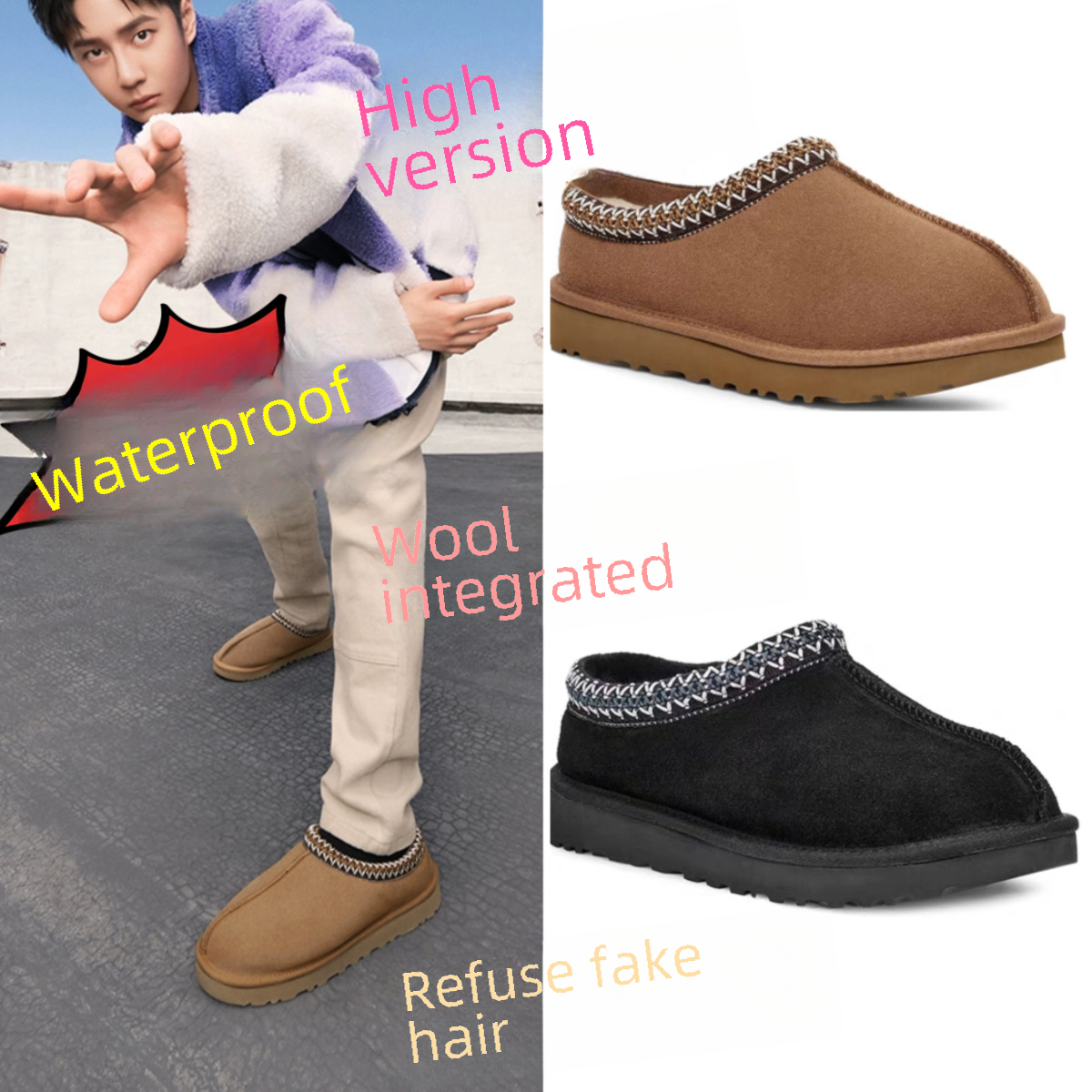 2023 sheepskin fur integrated men s winter slippers flat warm snow cotton boots ethnic style woven lace Tasman