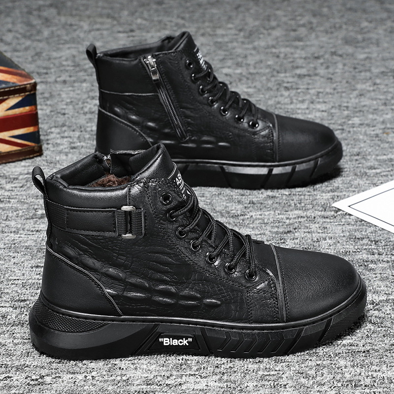 Winter men s shoes high top Martin boots men s fleece lined warm bumblebee desert overalls boots mid top cotton padded shoes trendy shoes men s boots