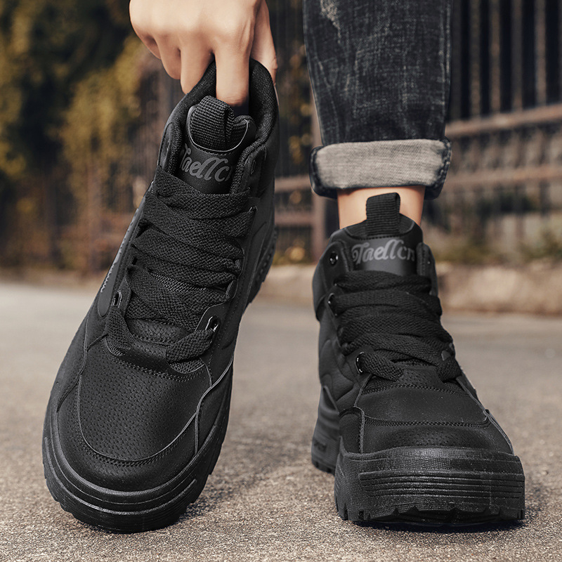 Autumn and spring high top men s shoes 2024 New fleece lined warm cotton padded shoes casual tooling shoes men s fashion shoes Martin boots