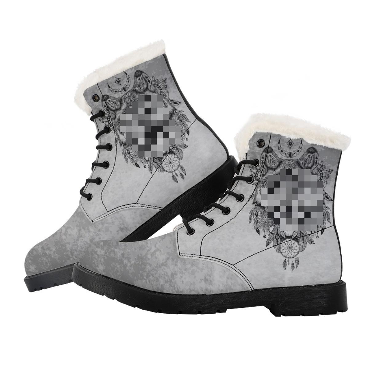 Digital printing European and American Foreign trade independent station hot sale outdoor mid calf one piece pattern men s cotton padded Martin boots