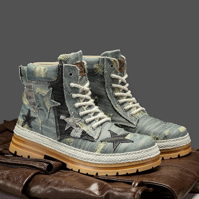 Men s boots autumn and winter 2023 denim ripped Martin boots men s British style overalls boots men s fashion motorcycle boots