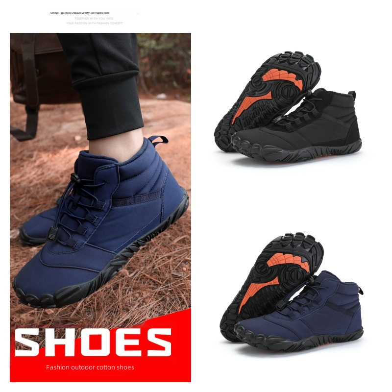 New cross border warm autumn and winter waterproof cotton padded shoes men s couple outdoor plus size five finger hiking snow boots women