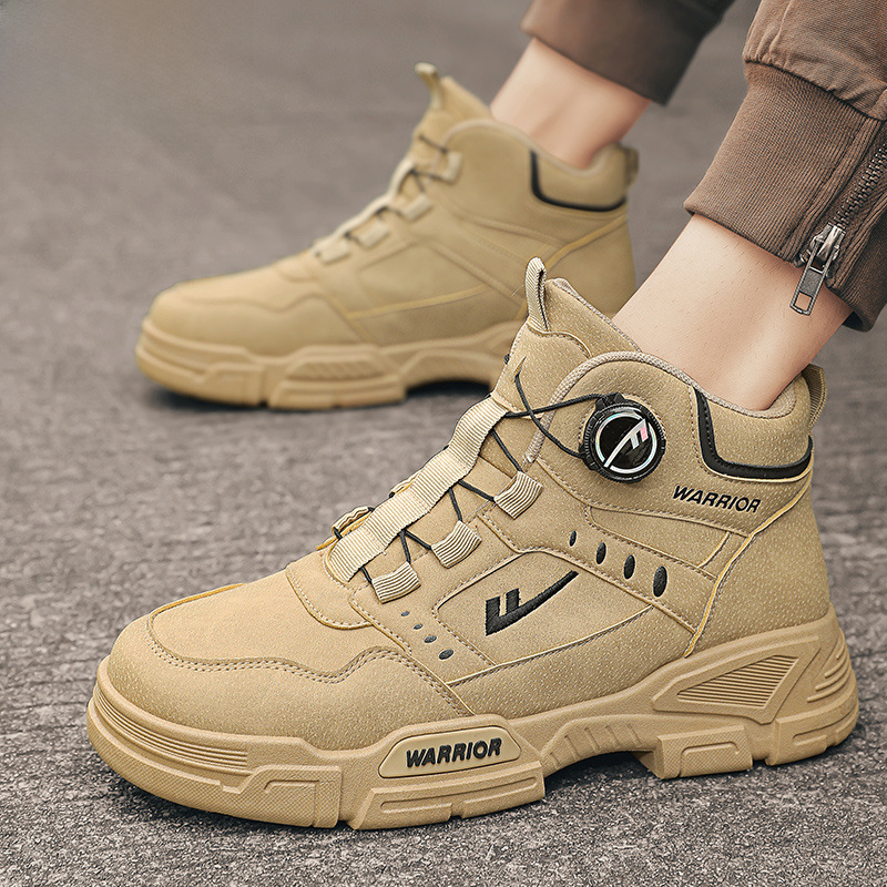 Warrior men s shoes Martin boots 2023 autumn and winter new leather waterproof rotating button thick bottom mountaineering high top labor protection shoes