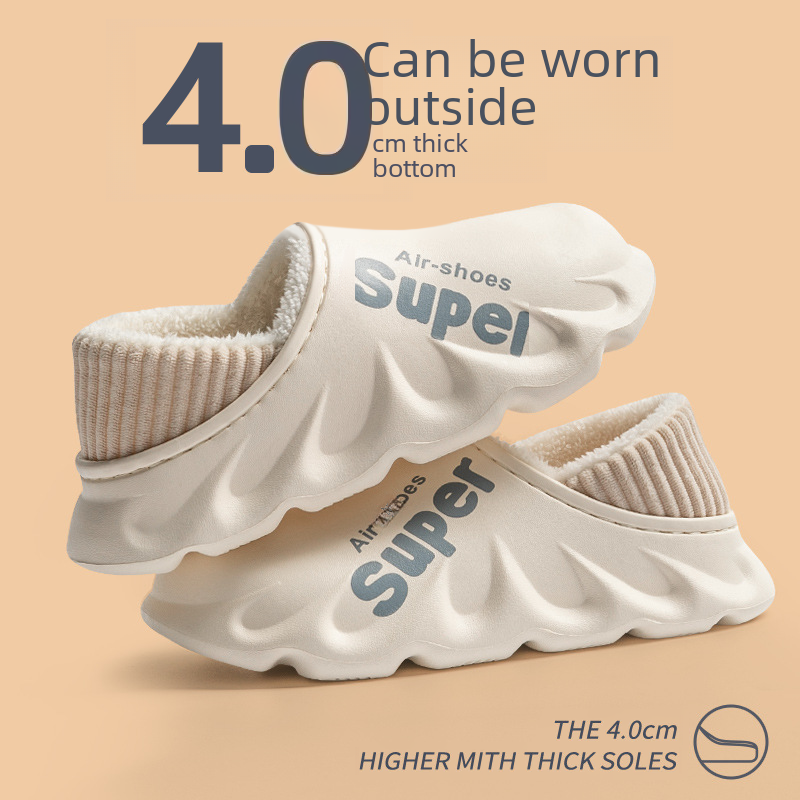 Plus size waterproof cotton slippers for women winter couple thick soled home men s fleece lined warm cotton padded shoes for men
